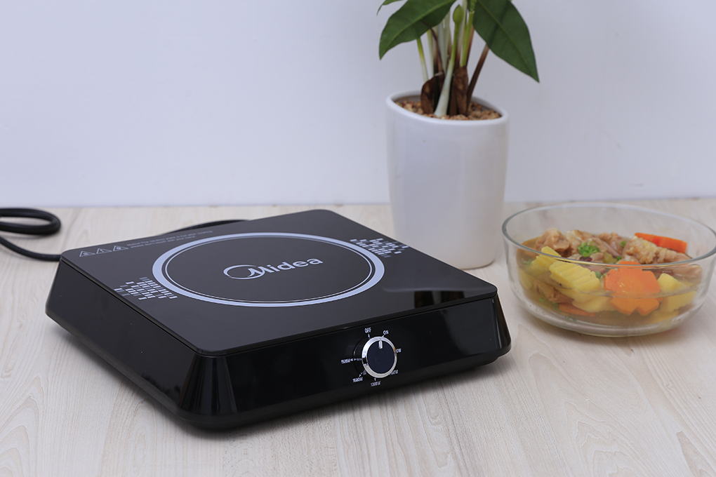 Bếp từ đơn Midea MI-K1917EF-B (1900W/Núm xoay/Đen/Kính chịu nhiệt/Nhỏ gọn/Kèm nồi Inox/12T)
